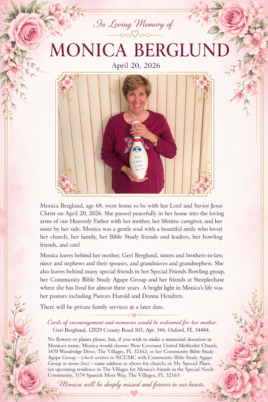 Special Friends Bowling is a descendant of The Handicapped Club started by Don Stewart in 1998. Our current leader is Coach Ray Kleczkowski. The club started with about a dozen members and in 2003 we advertised in The Villages Daily Sun newspaper to solicit new bowlers. We gained lots of interest and grew quickly. In 2009 the group voted for a name change and decided on Special Friends Bowling. Our current roster has 68 active bowlers – 31 women and 37 men.
